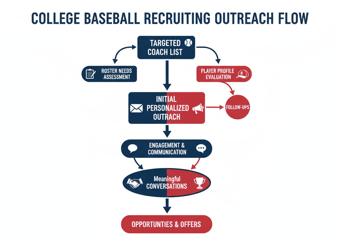 We build a target list based on fit and roster needs, then drive consistent coach outreach and follow-through — not generic blasts.
